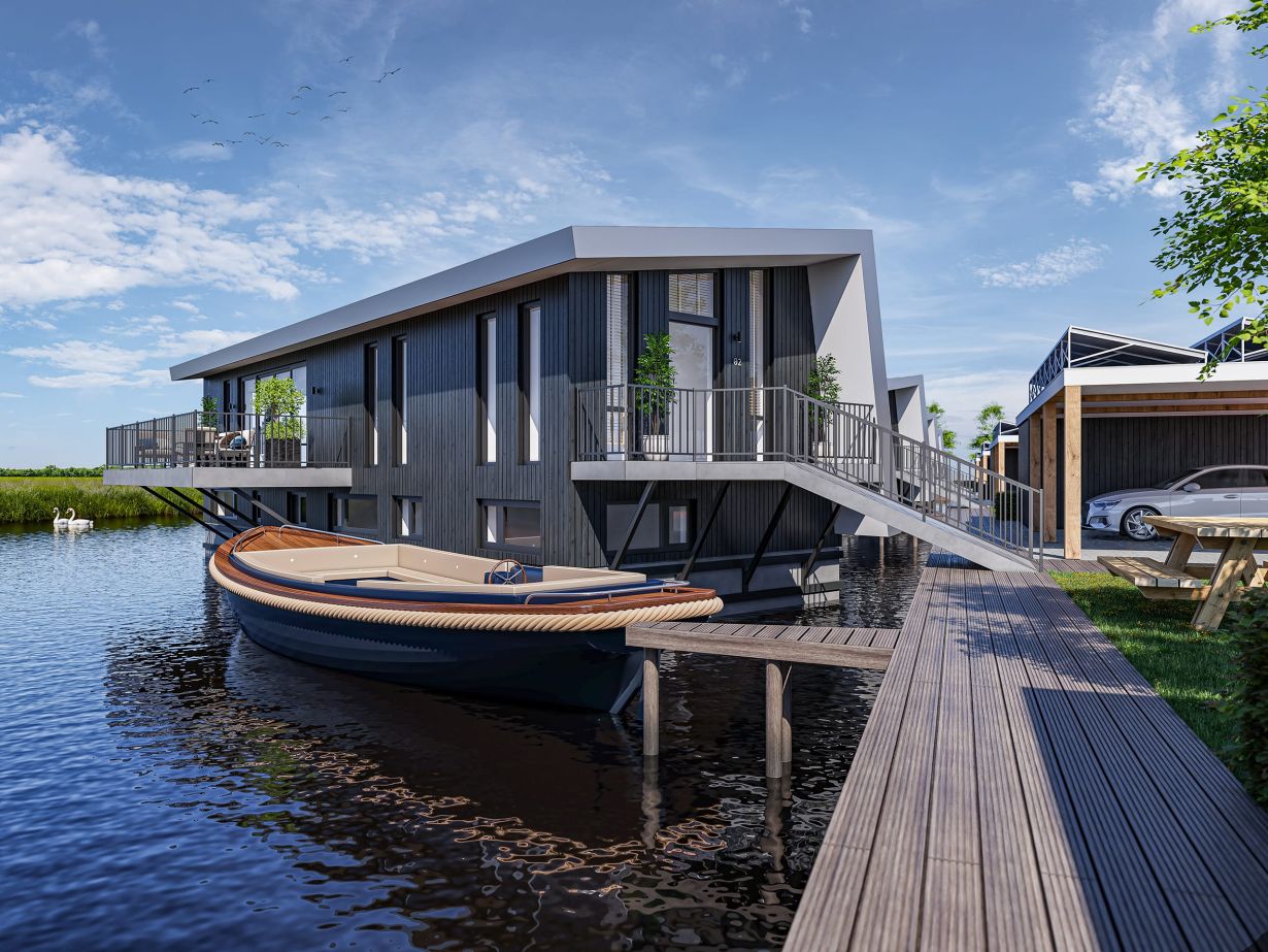 Op het uiterste puntje van Hof van Lemmer realiseren we vijf drijvende villa’s. Hier woont u op een plek waar nauwelijks verkeer komt. Dankzij deze unieke locatie geniet u iedere dag van de rust én een betoverend uitzicht over water en groen. Een goede kop koffie in de ochtend, een uitgebreide lunch in de middag en een welverdiend drankje onder de sterrenhemel om de dag af te sluiten: dit is buitenleven in optima forma.